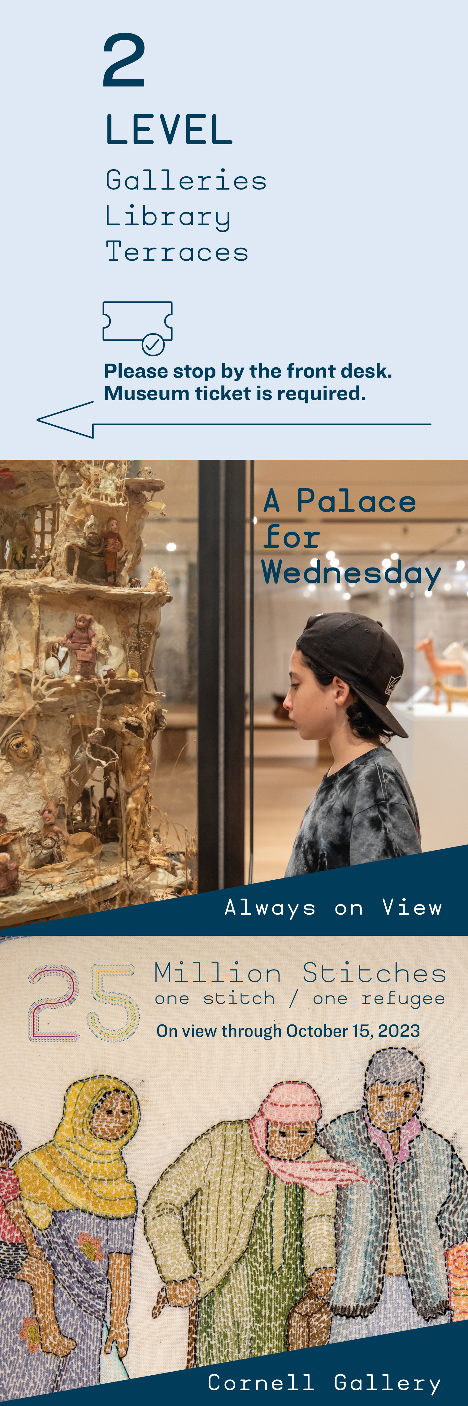 Entry Level banners featuring current exhibits